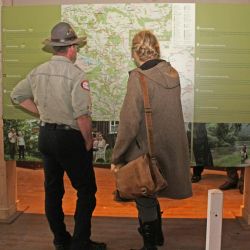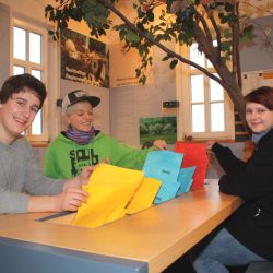 Füstenhagen. Das beliebte Imagefaltblatt „Mitten in Deutschland“ liegt jetzt in englischer Sprache vor. „Wir freuen uns, auch für unsere ausländischen Gäste ein Infofaltblatt anbieten zu können.“ so Uwe Müller, Mitarbeiter der Naturparkverwaltung. Der Inhalt der deutschen Version wurde von Michele Bardasi und Charly Hins übersetzt. Als Absolventen des Europäischen Freiwilligendienstes konnten sie im Naturpark aktiv mitarbeiten und bei der Übersetzung ihre Erfahrungen einfließen lassen.