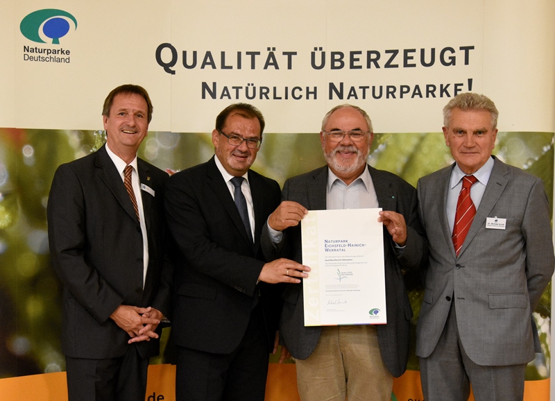 Fürstenhagen. Der Naturpark Eichsfeld-Hainich-Werratal wurden beim Deutschen Naturpark-Tag 2017 im Rahmen der "Qualitätsoffensive Naturparke" des Verbands der deutschen Naturparke (VDN) ausgezeichnet. Der Naturpark-Tag fand aus Anlass des 20-jährigen Bestehens des Naturparks Hoher Fläming in Bad Belzig statt. Rund 100 Vertreter aus 47 deutschen Naturparken kamen zusammen, um über aktuelle und geplante Naturpark-Projekte zu berichten und durch Informationen, Ideen und den Erfahrungsaustausch mit den Verantwortlichen in den Naturparken ihre Projekte weiter zu entwickeln und auszubauen.