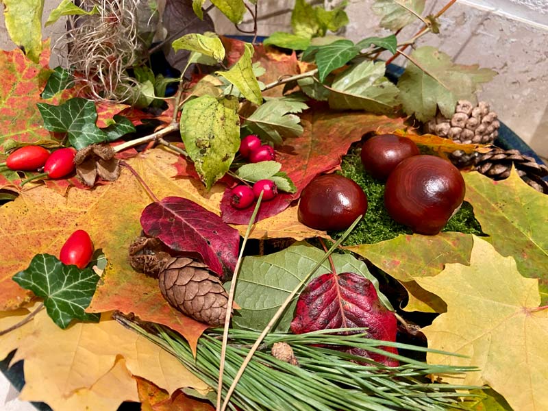Bei einer Wanderung sammeln wir Naturmaterialien und basteln im Anschluss Waldtiere.