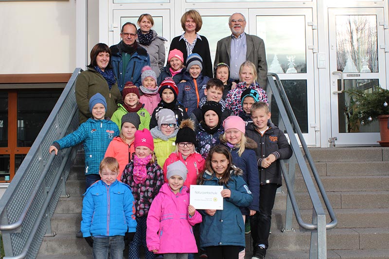 Am 05. Dezember 2018 wurde nun der Kooperationsvertrag zwischen der Grundschule „Regenbogen“ und dem Naturpark offiziell unterschrieben. Die Kinder der Natur-AG bekamen stellvertretend für die Schulleiterin, Frau Schlanstedt, die Plakette „Naturparkschule“ vom Leiter des Naturparks, Dr. Johannes Hager, überreicht und halten sie auf dem Foto stolz in die Kamera. Ziel der Kooperation ist es, die Kinder an die Natur heranzuführen und für Fragen der Umwelt zu sensibilisieren. Im Mittelpunkt soll hierbei eine qualitativ hochwertige „Bildung für nachhaltige Entwicklung“ sowie die Vermittlung von Freude an und in der Natur stehen. Der Schwerpunkt der Zusammenarbeit soll auf dem Aufbau einer Junior-Ranger-Gruppe liegen. Das bundesweite Junior-Ranger-Programm ist ein Projekt von EUROPARC Deutschland der Dachorganisation der Nationalparks, Biosphärenreservate und Naturparks in Deutschland. Begleitet von Rangern lernen Junior Ranger die Natur auf aktive, kreative und spielerische Weise kennen und schätzen.