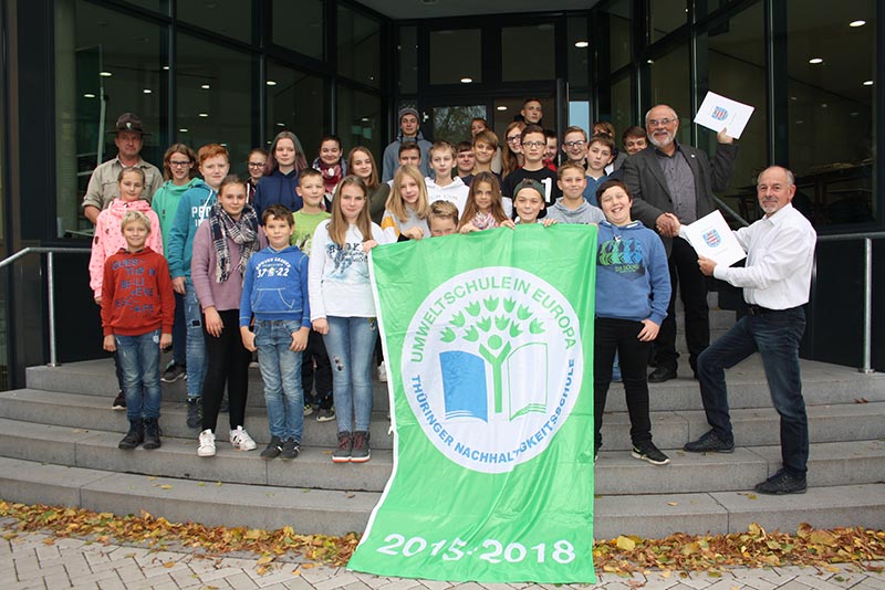 Bereits seit dem Jahr 2011 haben die Regelschule und der Naturpark einen Kooperationsvertrag in Sachen Umweltbildung geschlossen und seither darf sich die Mihlaer Schule auch Naturparkschule nennen. Beide Partner verfolgen das gemeinsame Ziel, junge Menschen an Natur heran zu führen und für Fragen der Umweltbildung zu sensibilisieren. Zahlreiche gemeinsame Projekte wurden in den vergangenen Jahren realisiert. Höhepunkte der Zusammenarbeit waren bisher die Jugendbegegnungen mit dem Rodnaer Nationalpark in Rumänien und die erfolgreiche Beteiligung der Schüler am Wettbewerb zum Naturparkplan. Diesmal vereinbarten Dr. Johannes Hager, Naturparkleiter und Schulleiter Uwe Schwanz eine Fortführung und die Vertiefung der partnerschaftlichen Zusammenarbeit. Auch sollen zukünftig die Lehrer der Regelschule die Möglichkeit erhalten, an den Fortbildungen des Naturparks im Bereich der Umweltbildung und an Naturführerschulungen teilzunehmen. Auch im Bereich der Hausbewirtschaftung der Schule sollen künftig regionale Produkte noch stärker in den Blick genommen werden und Maßnahmen zur Energie- und Wassereinsparung getroffen werden. Für den Umweltrat der Schule, der sich aus jeweils zwei gewählten Schülern der Klassen 5 bis 10 zusammen setzt, war es eine gute Gelegenheit, die bisherigen Projekte kennen zu lernen, denn sowohl Biologielehrerin Susanne Merten als auch Dr. Johannes Hager hatten in kurzweiligen Vorträgen Bilder der bisherigen Aktionen zusammen gestellt. Dabei kamen schon viele neue Ideen bei den Schülern auf, wie man sich auch weiterhin lebendig im Umweltbereich engagieren kann. Und auf den nächsten Höhepunkt freuen sie sich schon sehr, es wird eine Busfahrt nach Fürstenhagen (bei Heiligenstadt) sein, um den Verwaltungssitz des Naturparks besser kennen zu lernen.