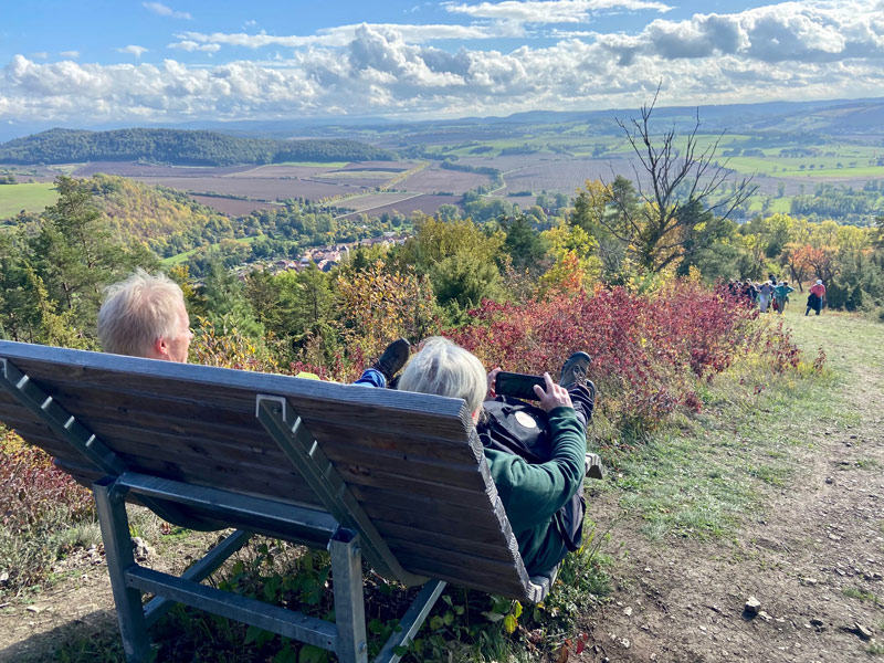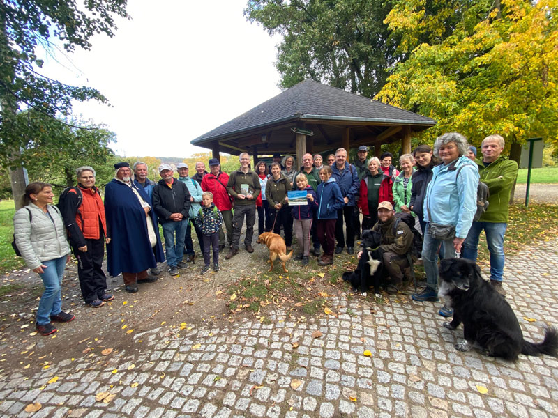 Ronny Schwanz, Bürgermeister der Stadt Creuzburg, freute sich über so viel Zuspruch: „Mein Dank geht an alle, die zur erfolgreichen Umsetzung beigetragen haben: insbesondere dem Landratsamt Wartburgkreis, der Naturparkverwaltung sowie den Rangern, dem Werratalzweigverein Creuzburg e.V., dem Forstamt Hainich-Werratal, bbsMedien und dem LPV Eichsfeld-Hainich-Werratal e.V.“. Rainer Lämmerhirt, Bürgermeister der Stadt Amt Creuzburg, verwies bei seinen Worten auf die Besonderheit des Weges: „Hier trifft Natur auf ganz viel Kultur. So kommen nicht nur Naturliebhaber, sondern auch Geschichtsinteressierte auf ihre Kosten, denn Creuzburg zählt zu den ältesten Städten Thüringens.“ Das Thüringer Ministerium für Umwelt, Energie und Naturschutz förderte mit über 10.000 € das Vorhaben im Zuge der Mittel für nachhaltige Regionalentwicklung in den Nationalen Naturlandschaften (2021). „Im gesamten Naturpark Eichsfeld-Hainich-Werratal konnten wir damit viele kleine Projekte mit engagierten Kommunen umsetzen. Getreu dem Motto „Mensch und Natur gehören zusammen“ leisten wir einen wichtigen Beitrag für die Regionalentwicklung, den Tourismus und die Bildung.“ so Naturparkleiterin Claudia Wilhelm, die Ronny Schwanz die offizielle Förderplakette überreichte. Mitarbeiter Uwe Müller stellte dem Publikum das neu entstandene Faltblatt zum Weg vor. Dieses ist bei den Tourist Informationen erhältlich oder digital abrufbar u.a. auf der Internetseite des Naturparks. Die Welterberegion Wartburg Hainich e.V. und Werratal Touristik e. V. haben nun wieder ein neues Angebot für ihre Gäste - pünktlich zum Beginn der Herbstferien.
