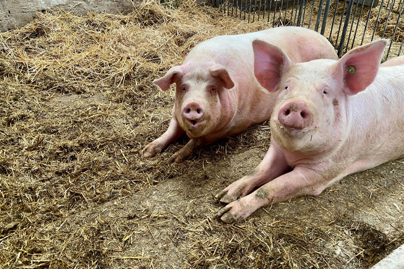 Auch circa 25 Schweine führen ein glückliches Leben. Das „Leicoma“ ist eine Schweinerasse mit Wurzeln aus der DDR. Der Name leitet sich aus den Städten Leipzig, Cottbus und Magdeburg ab – in denen die Hauptzuchtbetriebe lagen.