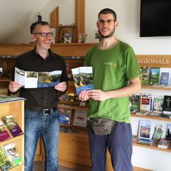 Füstenhagen. Das beliebte Imagefaltblatt „Mitten in Deutschland“ liegt jetzt in englischer Sprache vor. „Wir freuen uns, auch für unsere ausländischen Gäste ein Infofaltblatt anbieten zu können.“ so Uwe Müller, Mitarbeiter der Naturparkverwaltung. Der Inhalt der deutschen Version wurde von Michele Bardasi und Charly Hins übersetzt. Als Absolventen des Europäischen Freiwilligendienstes konnten sie im Naturpark aktiv mitarbeiten und bei der Übersetzung ihre Erfahrungen einfließen lassen.