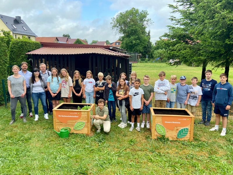 Bis Anfang Juli erfolgt nun die Übergabe in den jeweiligen Schulen, heute in der Regelschule Mihla – sehr zur Freude der Schüler*innen die nun als „Nachwuchsbotaniker“ die Hochbeete bestücken, pflegen und ernten können. Eigens dafür brachte Claudia Wilhelm noch Saatgut und Gartenwerkzeug mit. Auch Freiluftexperten und Sonnenanbeter kommen jetzt auf den zwei neuen Sonnensofas auf ihre Kosten.